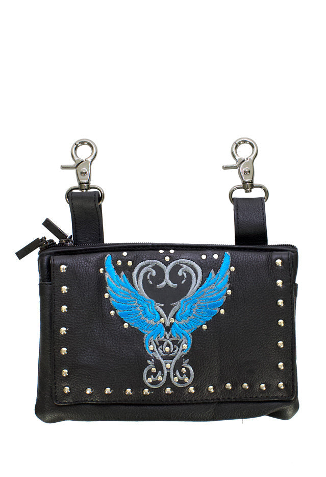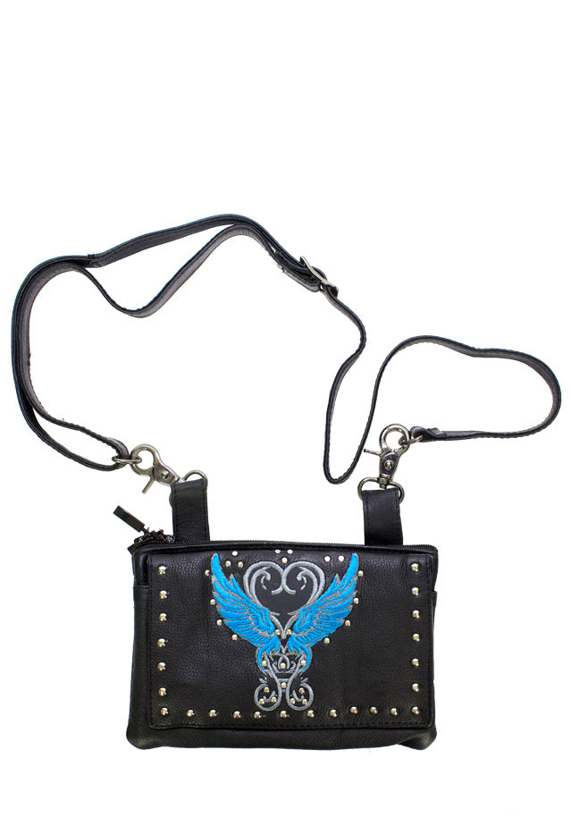 Studded Naked Cowhide Leather Belt Bag With Turquoise Wings