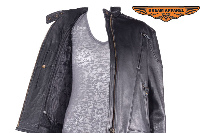 Women Heavy Duty Soft Leather Vented Racer Jacket