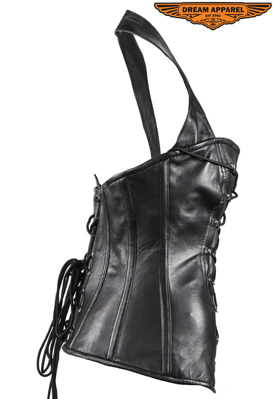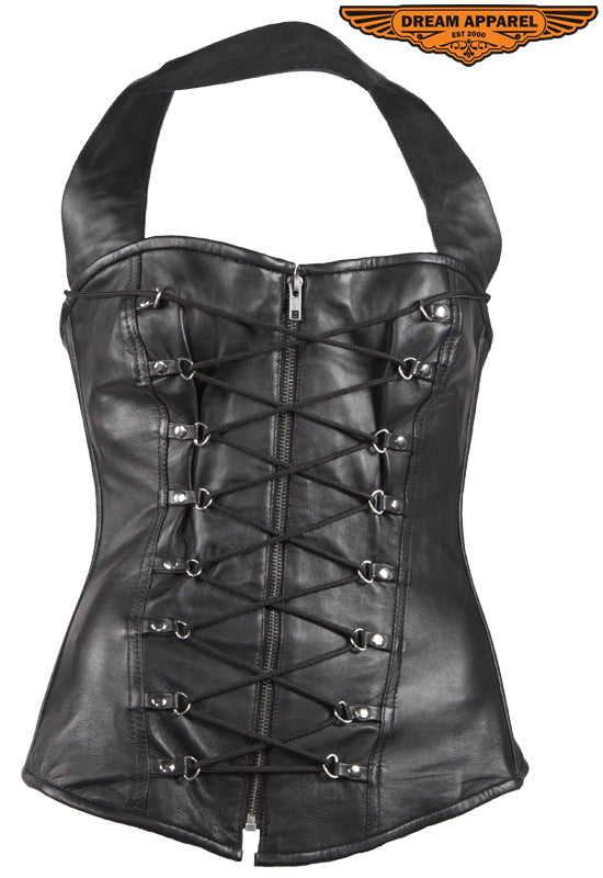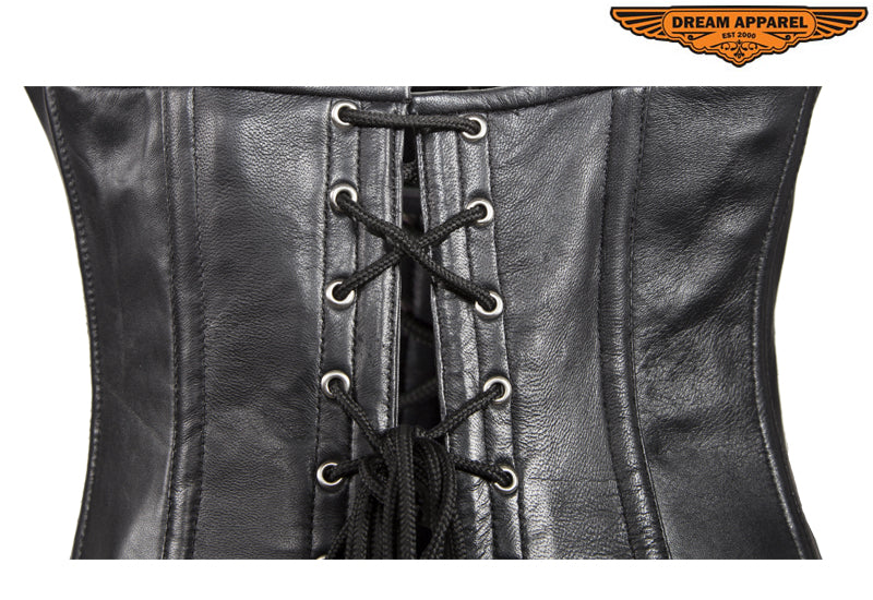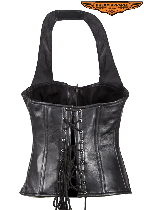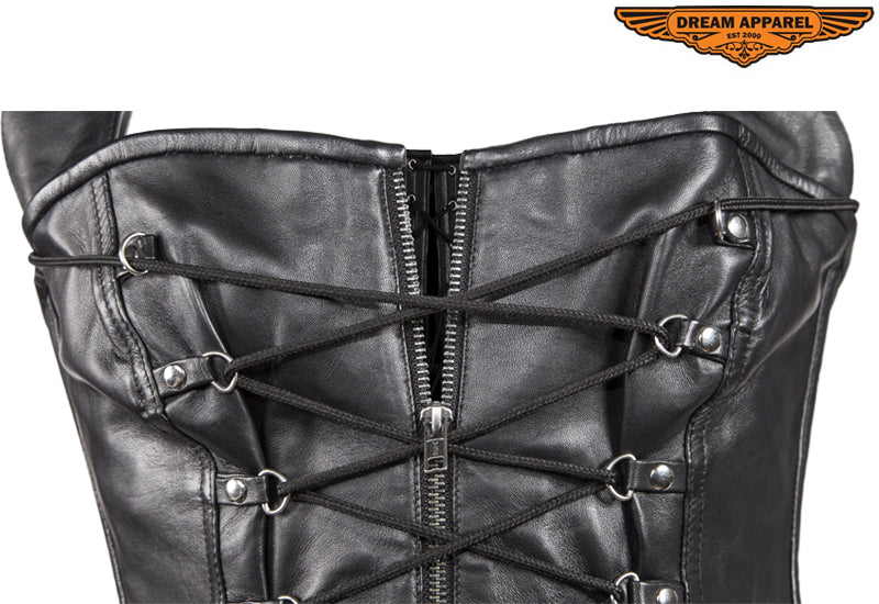 Womens Black Lamb Skin Leather Laces & Zippered Corset