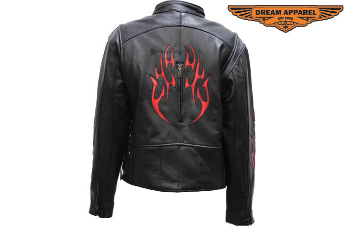 Women's Cowhide Leather Motorcycle Jacket With Flames